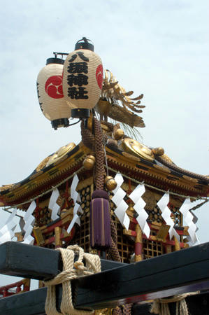 とても美しい八坂の本神輿。勇壮な担ぎ手が威勢の良いかけ声で約1.6トンといわれる神輿を五ヶ町内を担いで廻ります。