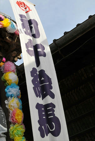 祭り半纏に身を包んだ子供たちや笠間稲荷囃子保存会の皆さんが山車を引き、五ヶ町内を軽快な囃子を奏でながら、願い事の書かれた絵馬を回収して廻ります。