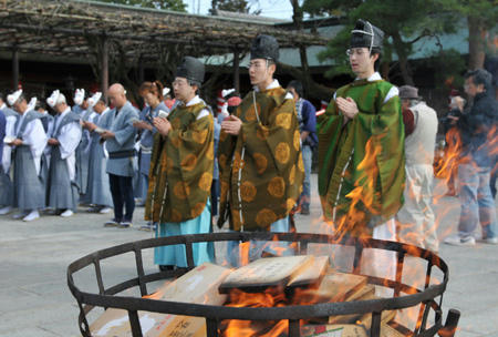 午後3時30分。厳かな雰囲気の中、絵馬炎上祭が斉行されます。