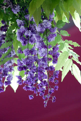 上旬)に見頃を迎えます。その中の八重の藤は、花がぶどうの房のように咲き、実をつ