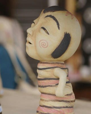 ることとなり、チラシやポスターに使用する人形の「頭(かしら)」を桜川焼作家 出町光識