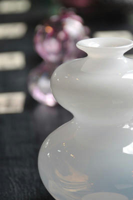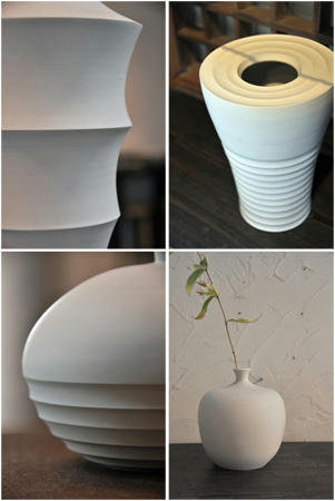 今回の展示は、大野氏のこだわりを反映させたとても美しい白磁の世界をお愉しみいただけます。また会場内では奥様の大野香織さんがお花を生けておられます。