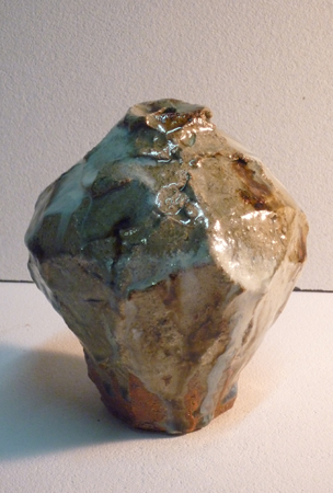 比較的厚く降灰した箇所には自然釉に貫入が入り、作品の表情を多様に変化させる。