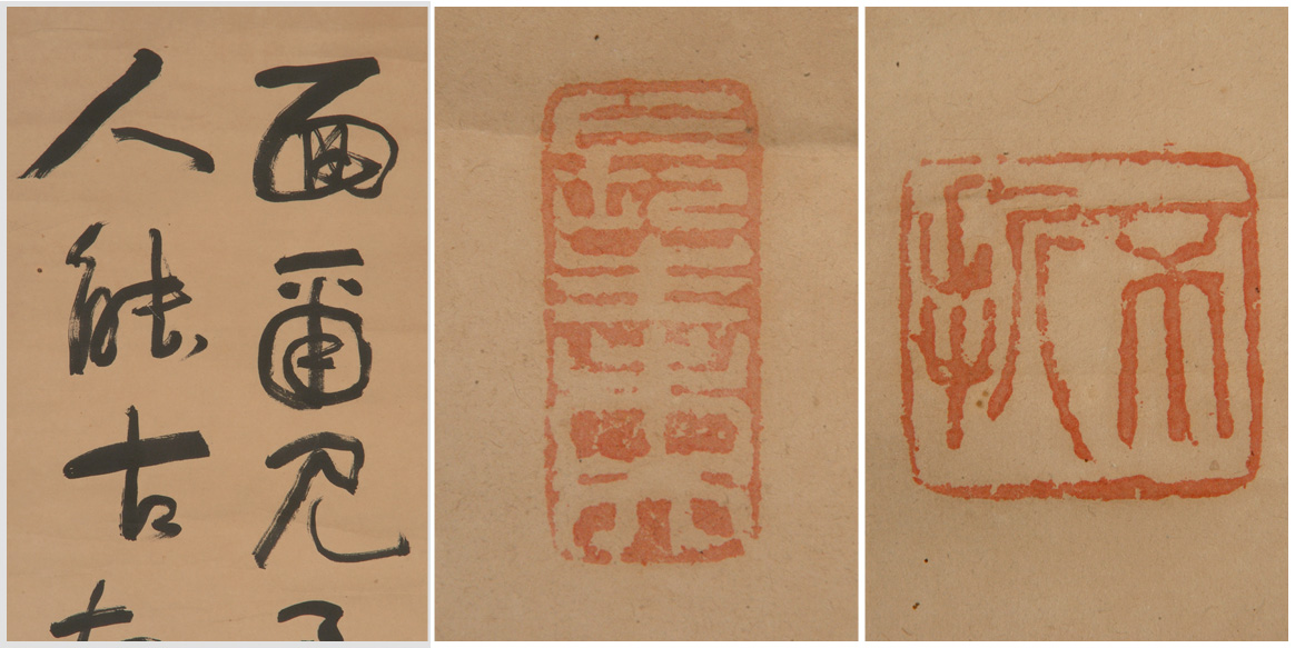 この扇面は裸の状態で見つけました... しわやシミ、折れ... 今後が大変です。何とかしなければ。