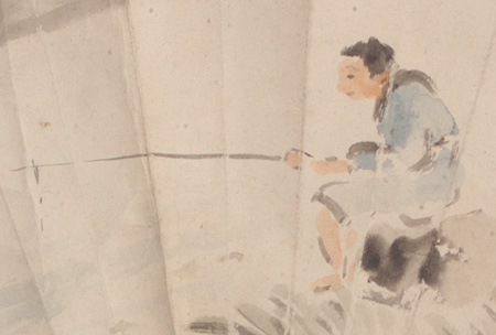 この扇面の絵は、牛久沼で釣りをしているのでしょうか? 芋銭はここでたくさんの河童と出会ったのかも知れません。実にロマンチックですね!