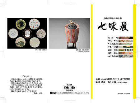 陶歌12周年特別企画「七味展」のご案内状に作成しました3つ折りパンフレットです。