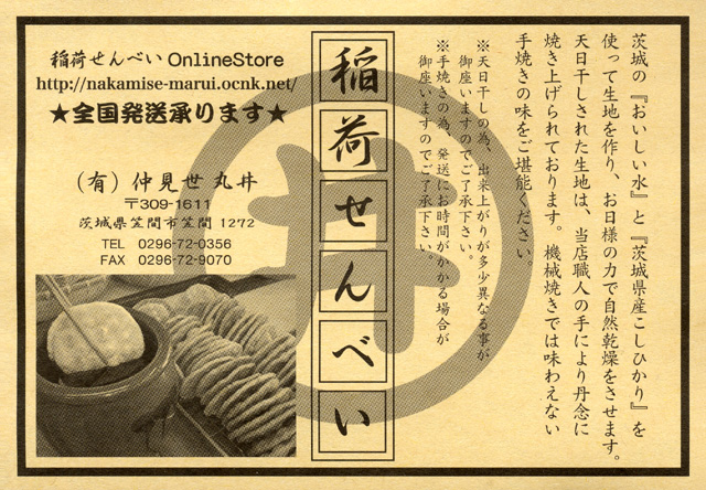 笠間稲荷神社の参道を入って右奥に「仲見世丸井」さんがあります。 そのお店のお煎餅はとてもこだわりをもって作られています。その一文を下記に...