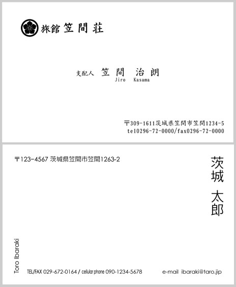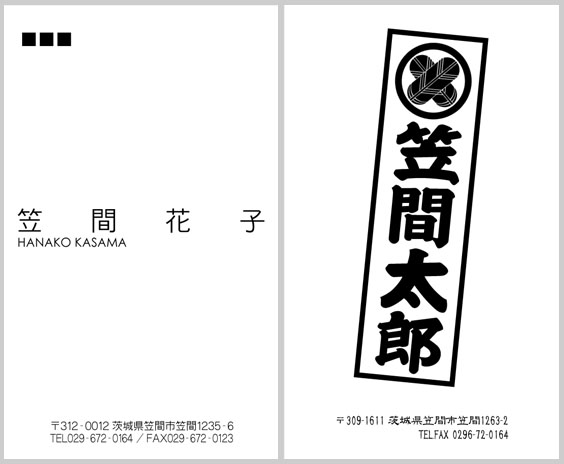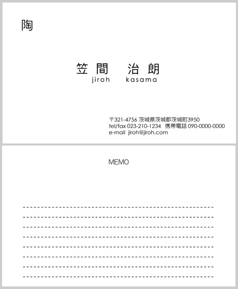 携帯電話(かなり前の機種です/シャープ製・SH901ic)で撮影した画像を取り込んで、シンプルな名刺を作成してみました。片面カラー、片面モノクロです。