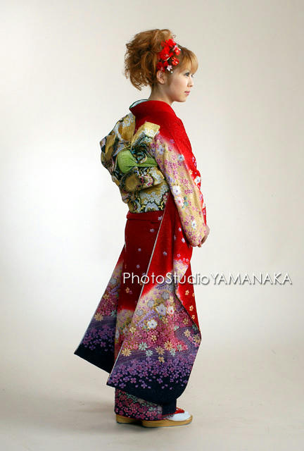 どんなポーズで写そうか? 2年前に写したお姉さんと相談。やっと決まったところで、お淑やかなスタイルで全身撮影。これはお決まりですね!