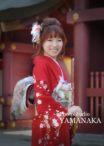 山中写真館の成人式前撮りは、現在進行中。ご希望があれば屋外へ出てのロケーション撮影(成人式当日はできません)もできます。