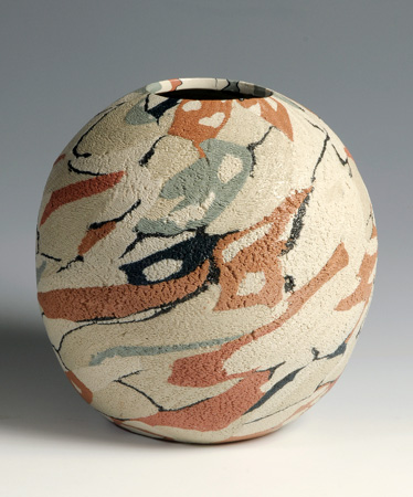 松井康成:練上破調文壷32.5×31.5cm