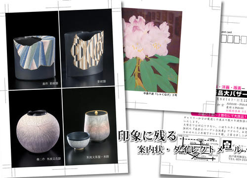 展覧会や個展、発表会などのご案内状(DM)や告知ポスターも低料金にて作成いたします。