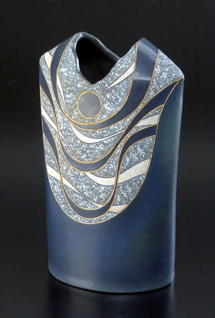 この花器の左写真は、意図して右側後方から光をあて、右腰の部分