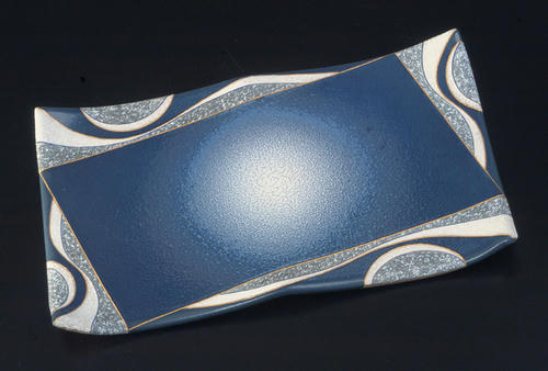 彩泥長方皿の全体像。ブルーの色彩がたいへんきれいです。