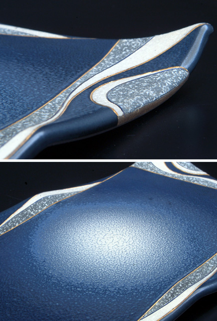 こちらの写真は、柳橋 進氏の彩泥長方皿の部分カットです。
