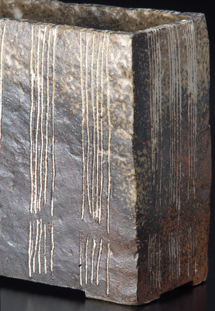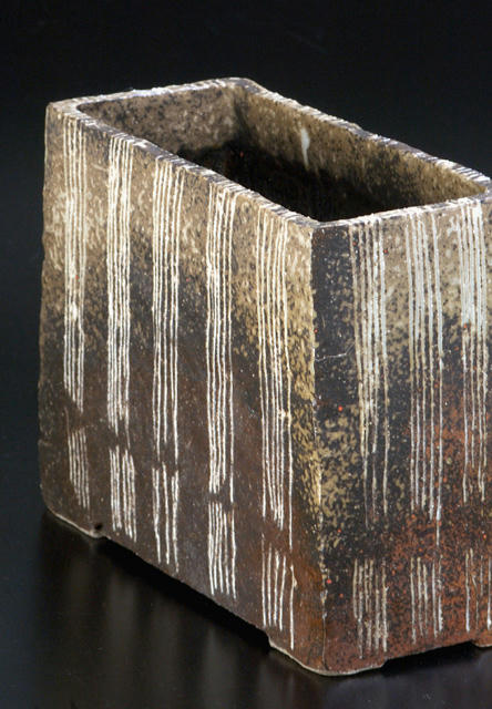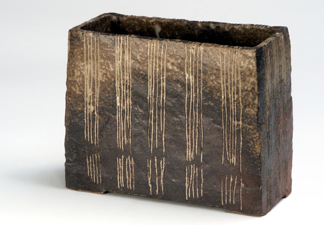 題名:灰釉線紋花器(20.7㎝×25.0㎝)