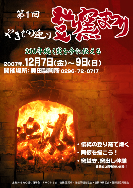 笠間やきもの通り 伝統の登り窯で焼く 第1回『登り窯まつり』が
