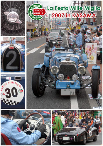 本日7時40分。笠間稲荷神社前チェックポイントを数百台のクラシックカーが