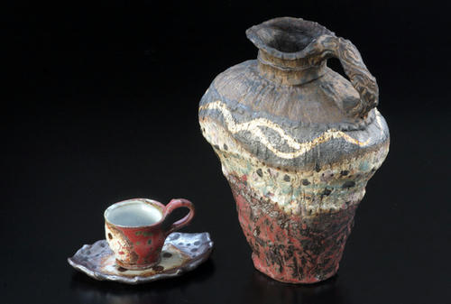 写真下は銅釉のコーヒーカップと花器。
