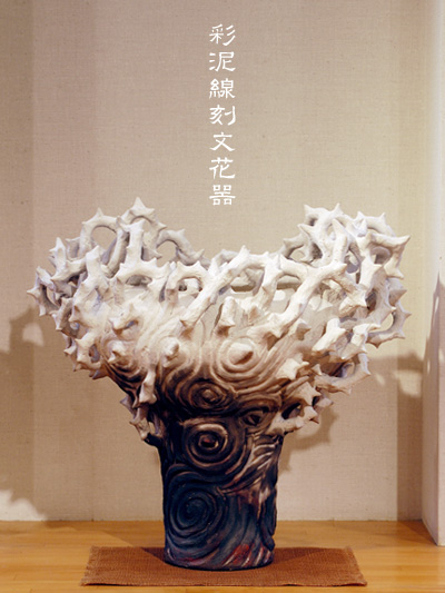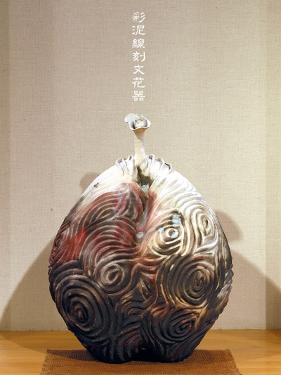 彩泥線刻文花噐