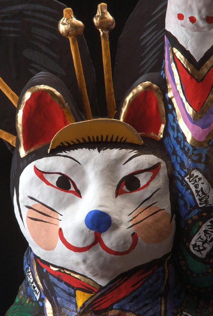 とても愛らしい招き猫の張り子。こんな招き猫がお店の一角