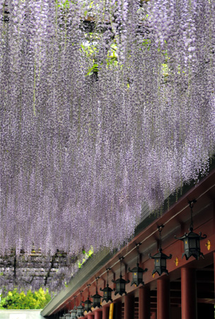 日本三大稲荷の笠間稲荷神社境内では樹齢400年を越す大藤と天然記念物に指定された