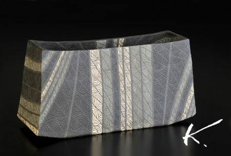 ■作品名:波文泥彩花器(W43×15×H22)