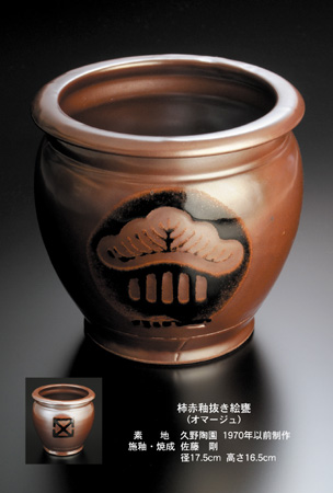 柿三昧の柿とは、柿色に焼き上がる、褐色の鉄分の多い釉のこと。佐藤さんは、熱心にこの柿釉に取り組んでおられます。どことなく昭和を思い起こさせるイメージの柿釉。