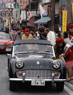低いエキゾーストノートを轟かせながら、町の中を走っていく姿はとても良いものです。皆さんも是非笠間稲荷の前で応援をお願いいたします。