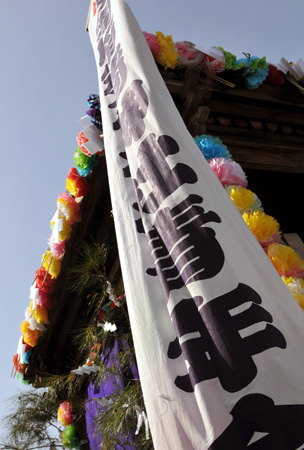 祭り半纏に身を包んだ子供たちや笠間稲荷囃子保存会の皆さんが山車を引き、五ヶ町内を軽快な囃子を奏でながら、願い事の書かれた絵馬を回収して廻ります。