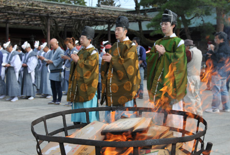 午後3時30分。厳かな雰囲気の中、絵馬炎上祭が斉行されます。