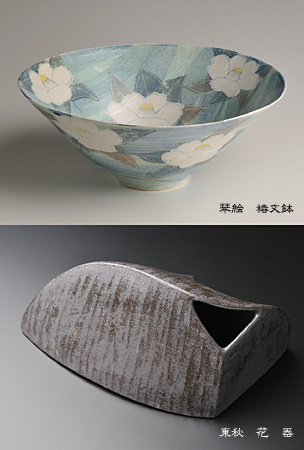 益子焼作家、島田琴絵さんと島田東秋氏の2人展。琴絵さんの椿文鉢はとてもやわらかい雰囲気のある素敵な鉢です。また今回の東秋(もとあき)さんの作品は、渋い黒の花器です。不思議な形が心を魅了します。ご興味のある方は是非、ご覧になってください。