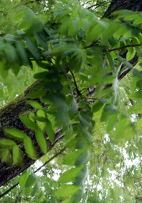 今、神社の境内や周辺のくるみは新しい濃い緑色の葉が神社の周りを
