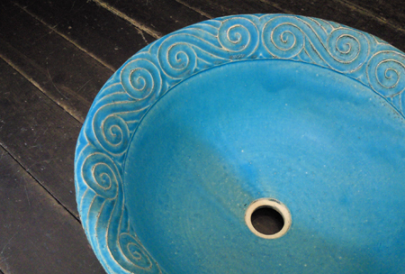 海のように深いブルーが鮮やかな洗面ボウルや花器